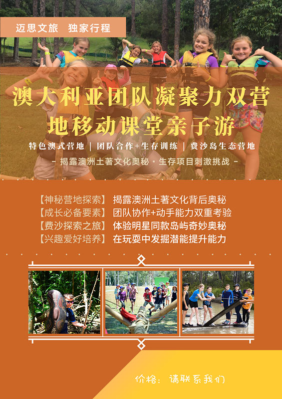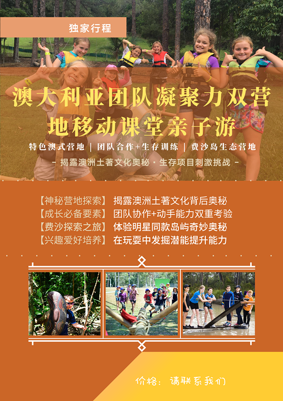 早餐后,进行【团队协作大作战】老师为大家精心设计了一系列动手动脑的挑战,并需要团队凝聚一起,合力通过难关。下午,将进行【澳洲土著文化揭秘】,将学习到这片土地悠久的历史,这里的原住民部落及其发展的故事,并有机会亲手动手制作土著绘画。晚餐时分,进行【结营仪式】,由老师及学生代表发言,回顾营地生活的点点滴滴。